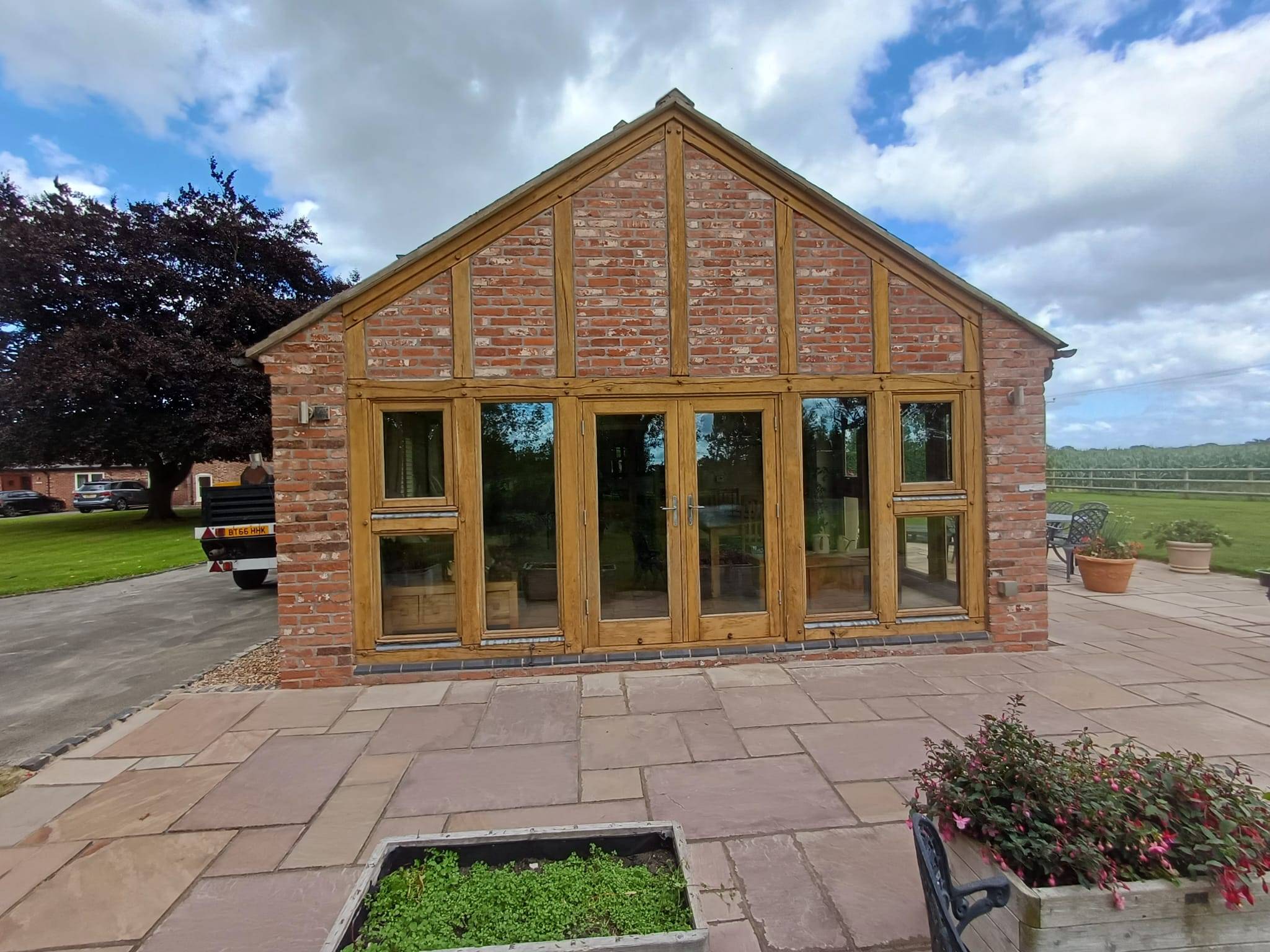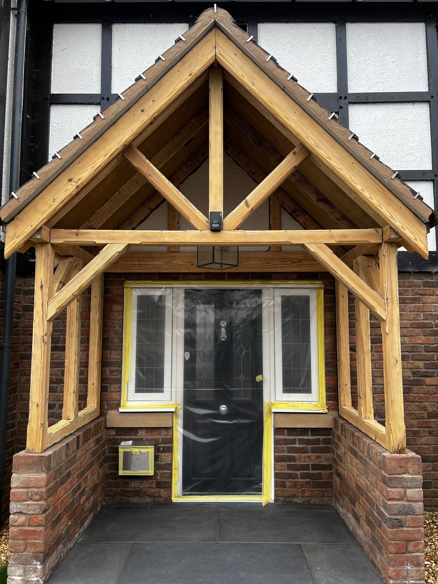 Here we sandblasted the oak frames of this porch area. Before, you could not see the grain in the wood, but after we exposed further character and beauty whilst creating a more contemporary appearance to the front of this property.